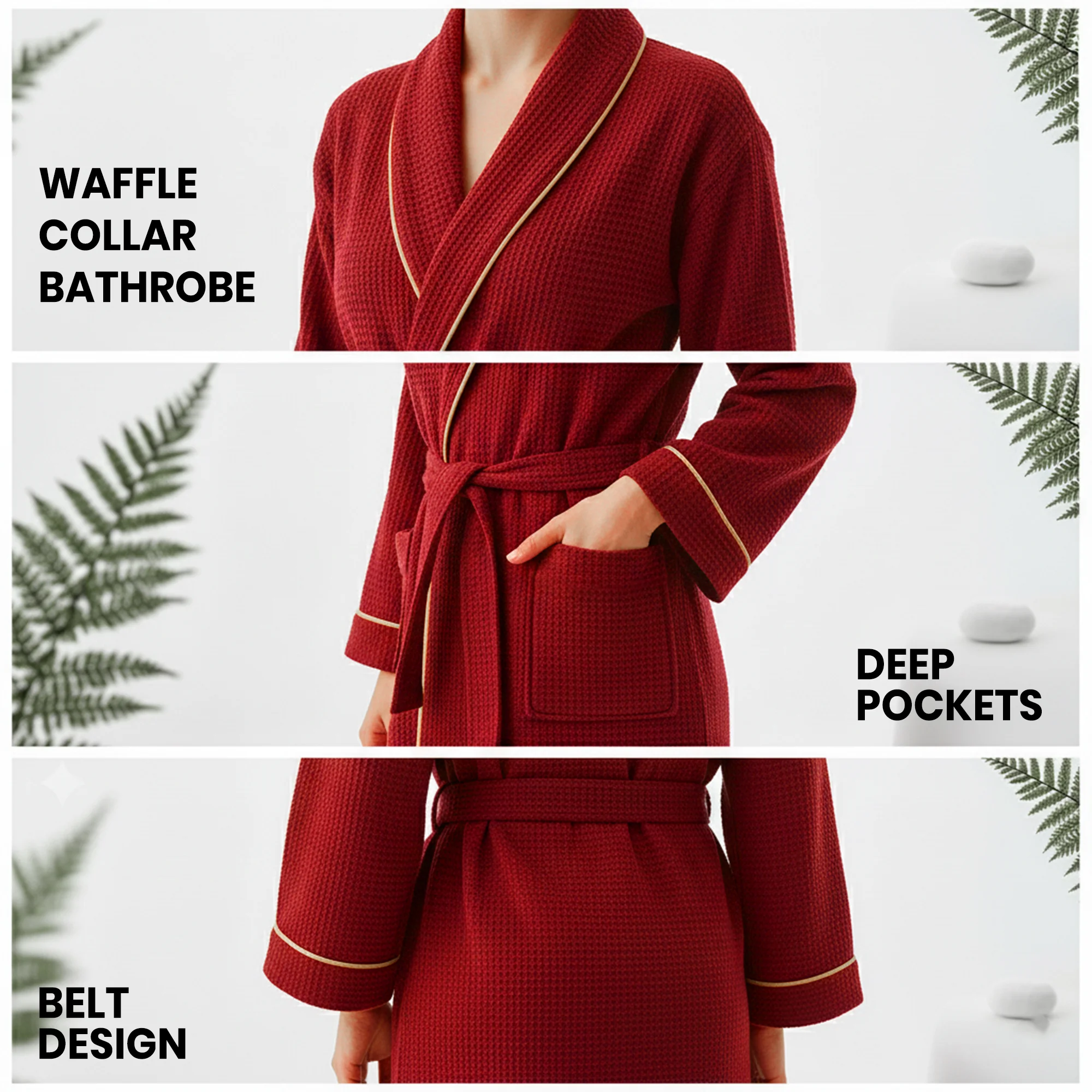From calm neutrals to deep tones, each colour brings its own feel. White offers a crisp, clean look; burgundy adds warmth; teal feels refreshing; navy blue brings calm; and black gives a sleek finish. No matter the preference, there’s a robe that matches your mood and style.