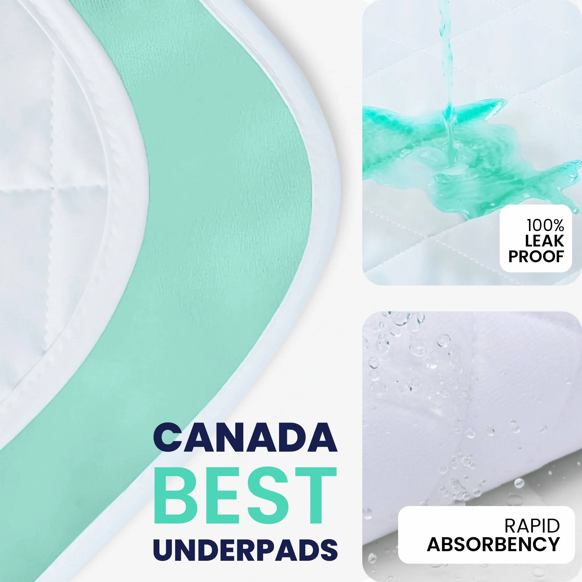 These incontinence pads combine comfort, reliability, and practicality. With a multi-layer waterproof design, available sizes ranging from 24″x34″ to 34″x54″, and colour options in blue and green, they offer protection that works for every setting. Whether you are a caregiver at home, a staff member in a hospital, or managing a long-term care facility, these pads provide dependable coverage that reduces stress and simplifies care. For anyone searching for the best incontinence pads in Canada, these washable and reusable options remain a trusted choice.